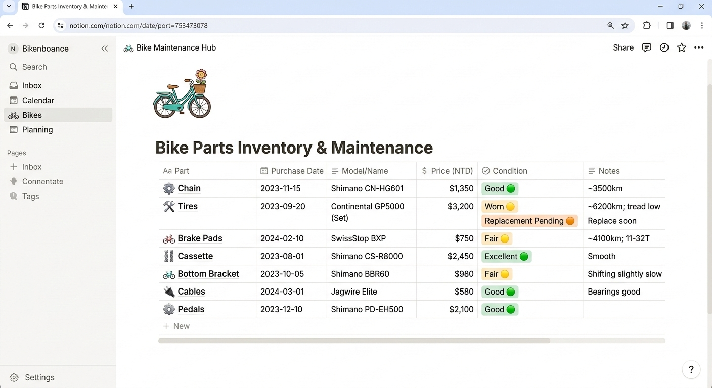 因為單車生活不只是那幾公里的路程,而是那些路程串連起來的記憶。當你幾年後翻開 Notion,看到當年那個連換胎都不會、在路邊發愁的自己,再看看現在能輕鬆完賽的紀錄,那種感動是任何昂貴零件都給不了的。
