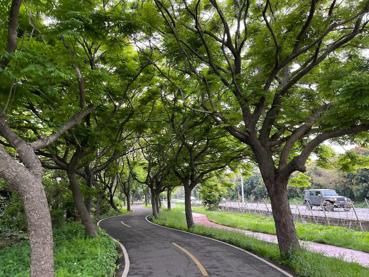 綠色隧道(大雅路段):這絕對是整條路線的精華!由兩側茂密的小葉欖仁樹自然形成的綠色隧道,長達數公里。陽光從葉縫中灑下,形成斑駁的光影,騎在其中,涼爽又夢幻。夏天來這裡,根本是天然的冷氣房,舒服到讓人想直接躺平。